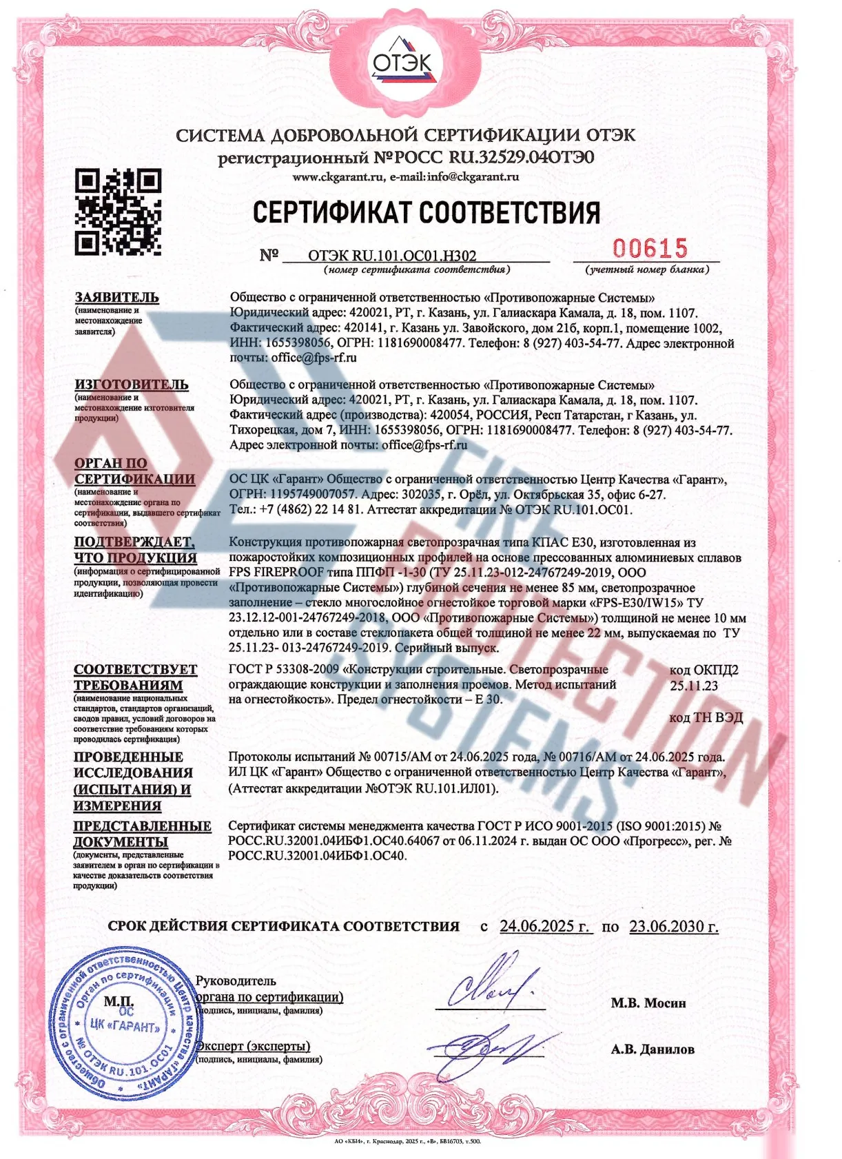 Противопожарные светопрозрачные перегородки отличаются следующими свойствами: